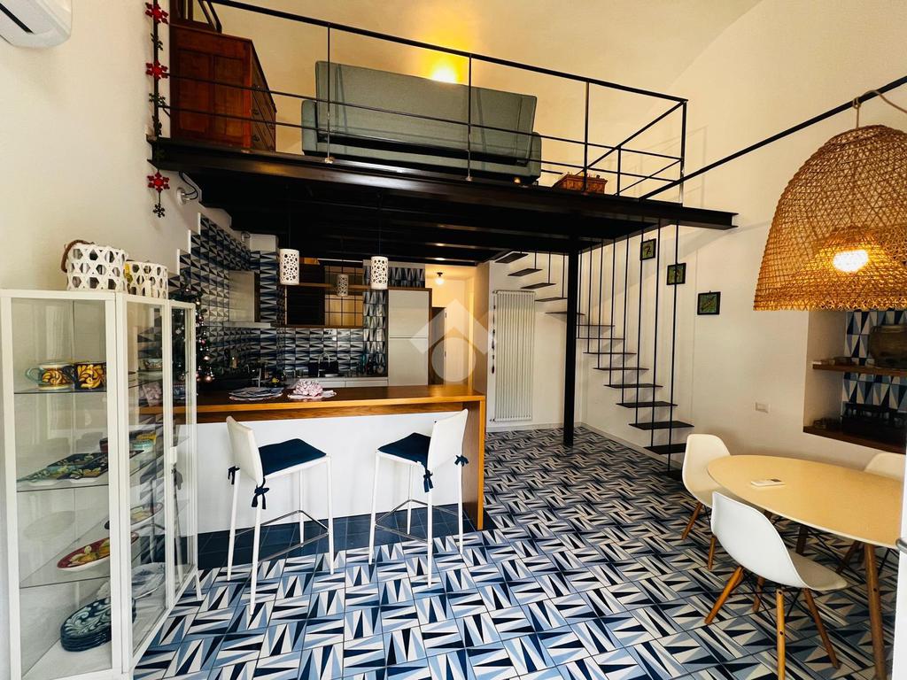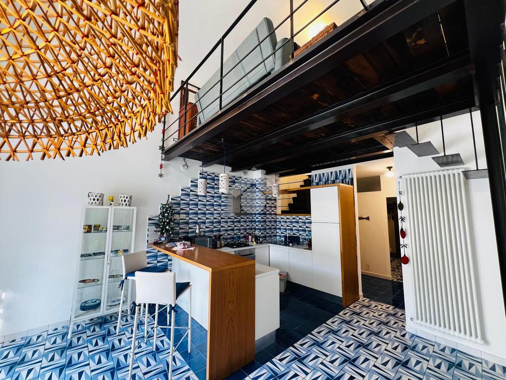 Appena entri, la luce danza sulle splendide ceramiche di Vietri: i colori tipici della costiera avvolgono ogni ambiente, dai pavimenti ai bagni, regalando un’atmosfera solare e autentica. Il cuore della casa è un accogliente living con cucina a vista, impreziosito da un raffinato soppalco in legno e ferro dedicato alla zona studio e da antiche nicchie riportate in vita come eleganti librerie illuminate.