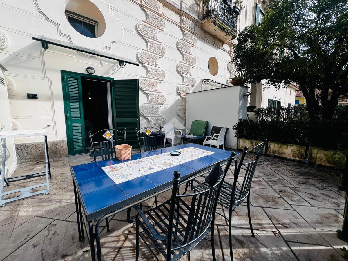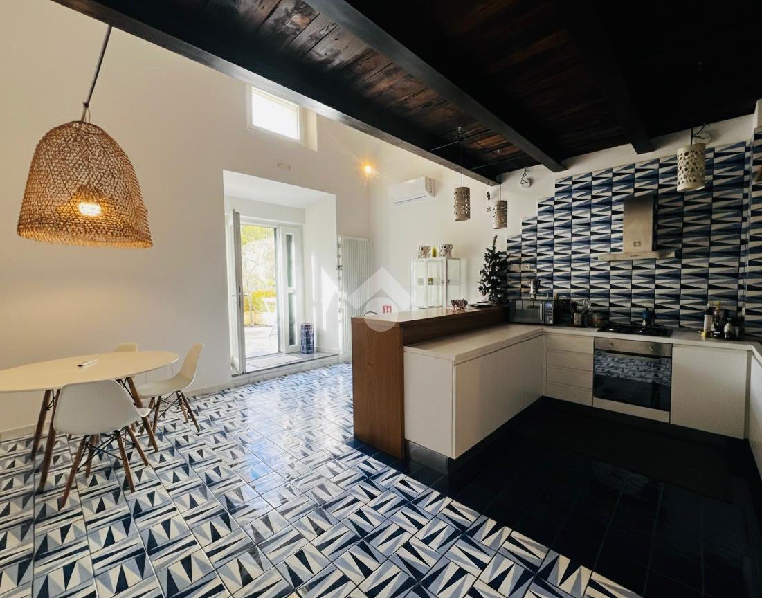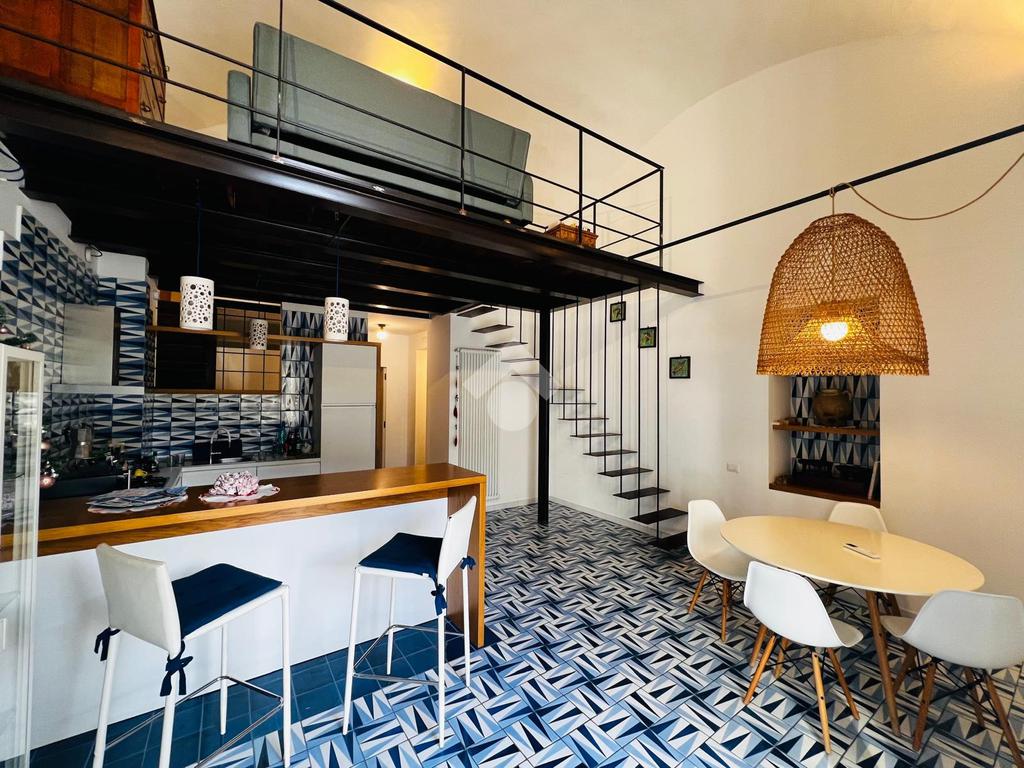 Immagina di varcare il portone di un maestoso palazzo dell'Ottocento e di essere accolto da una corte antica, dove gli archi in pietra raccontano storie di altri tempi. A pochissimi metri dalla spiaggia, ti aspetta questo appartamento unico, appena ristrutturato con un gusto sopraffino.